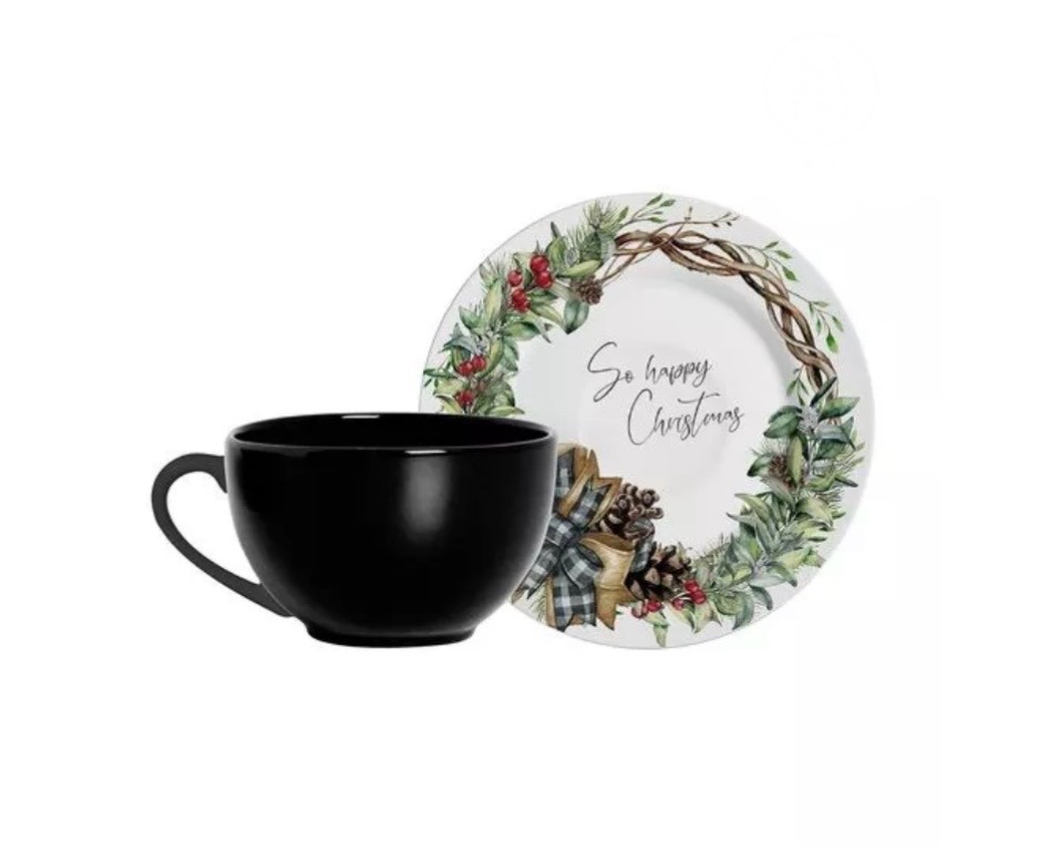 Jogo 6 xicaras de chá natalina