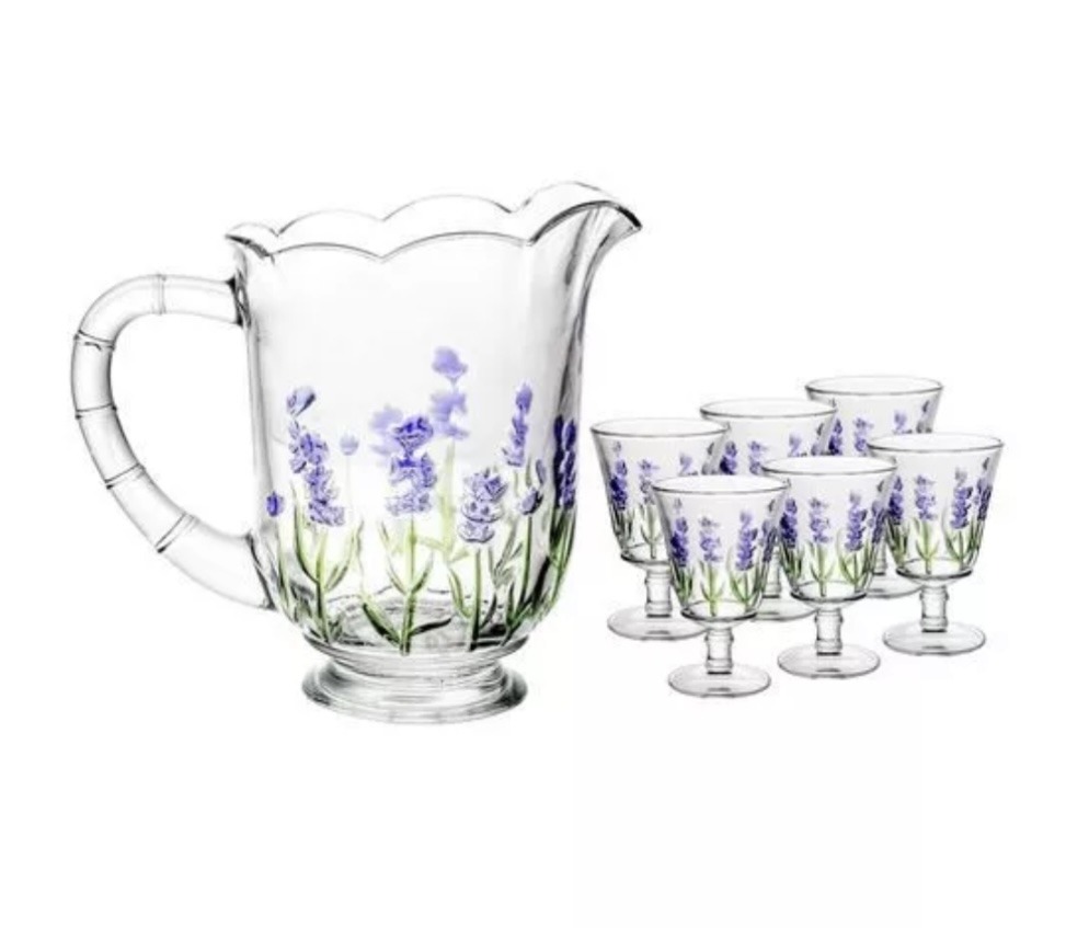 Jogo jarra e 6 taças lavanda