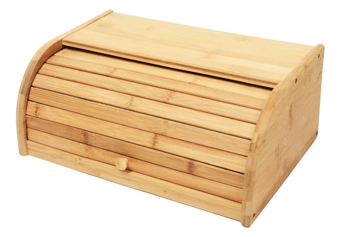Porta pão bambu com tampa retrátil