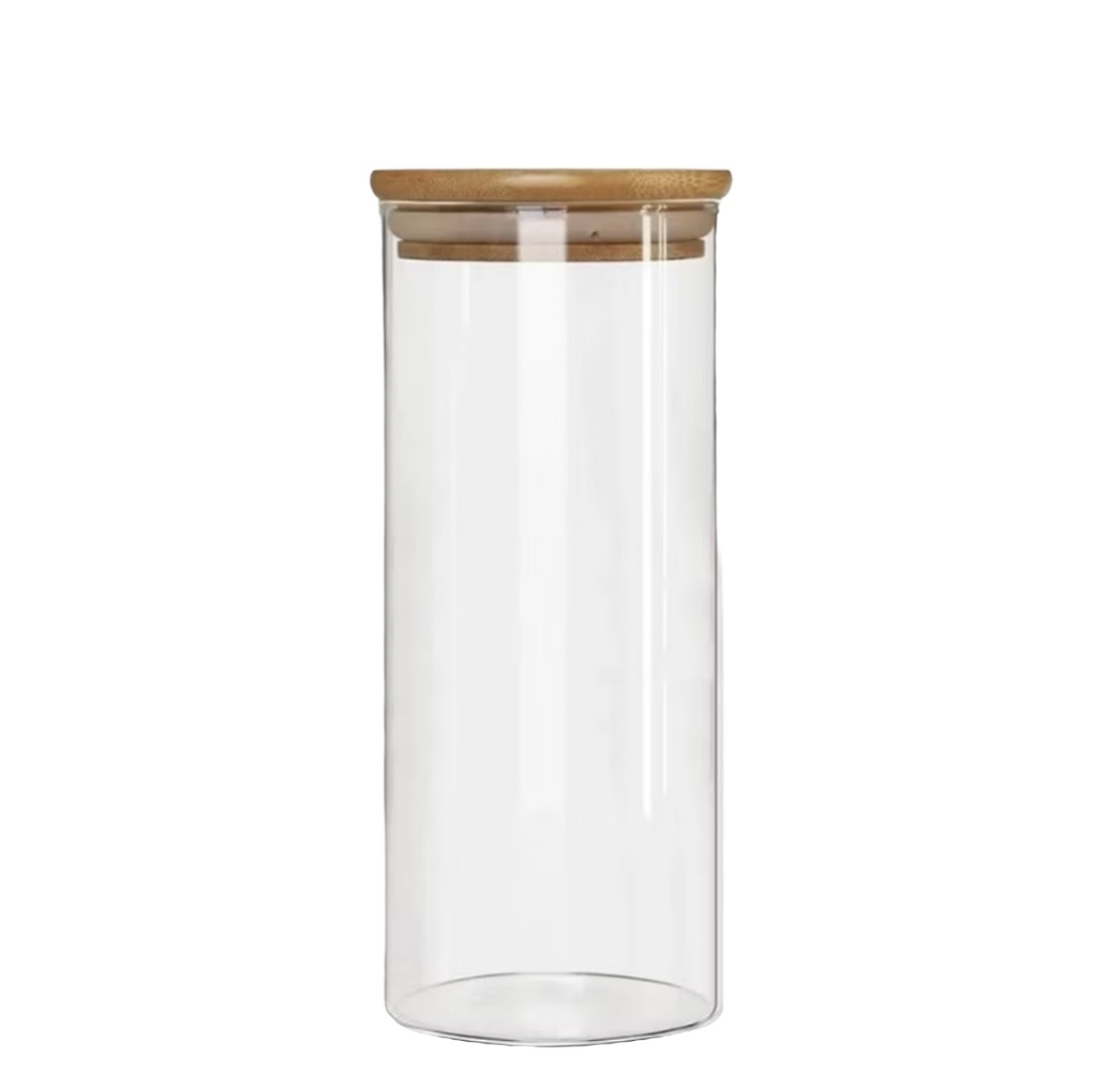 Pote hermético vidro com tampa bambu.